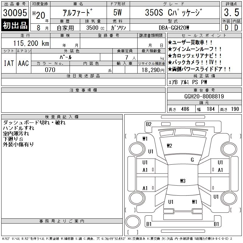 Год выпуска2008 Пробег 115 000 км КузовGGH20W Комплектация350S C PACKAGE