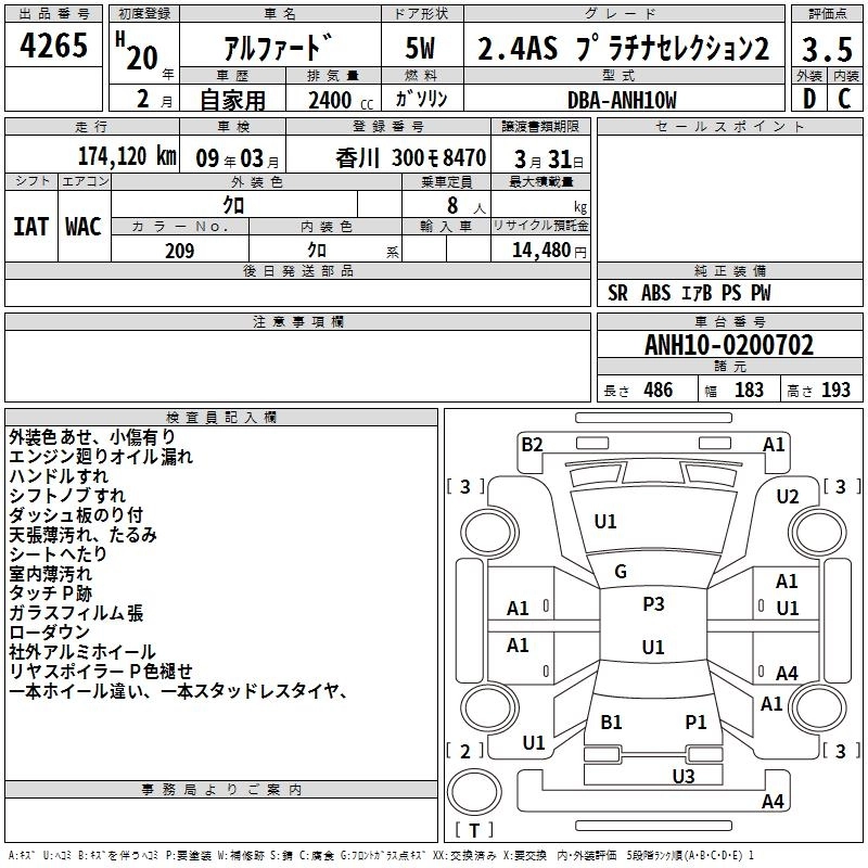 Год выпуска2008 Пробег 174 000 км КузовANH10W Комплектация2.4AS PLATINUM SELECTION 2