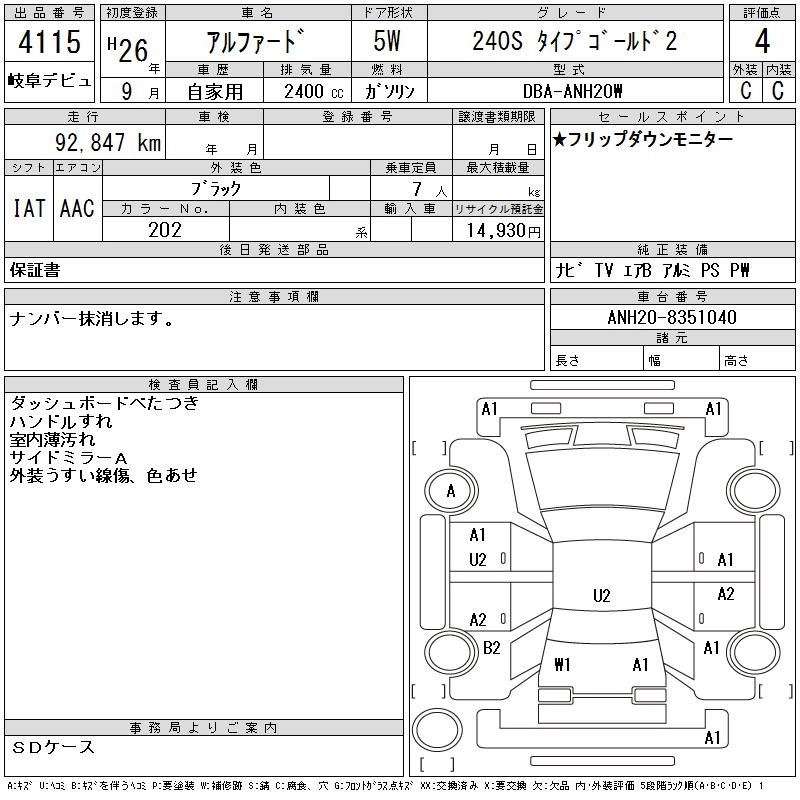 TOYOTA ALPHARD 2014 г., лот № 4115