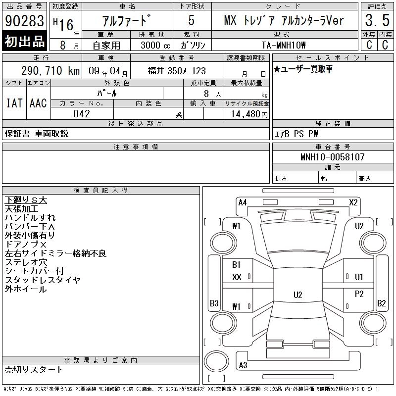 TOYOTA ALPHARD 2004 г., лот № 90283