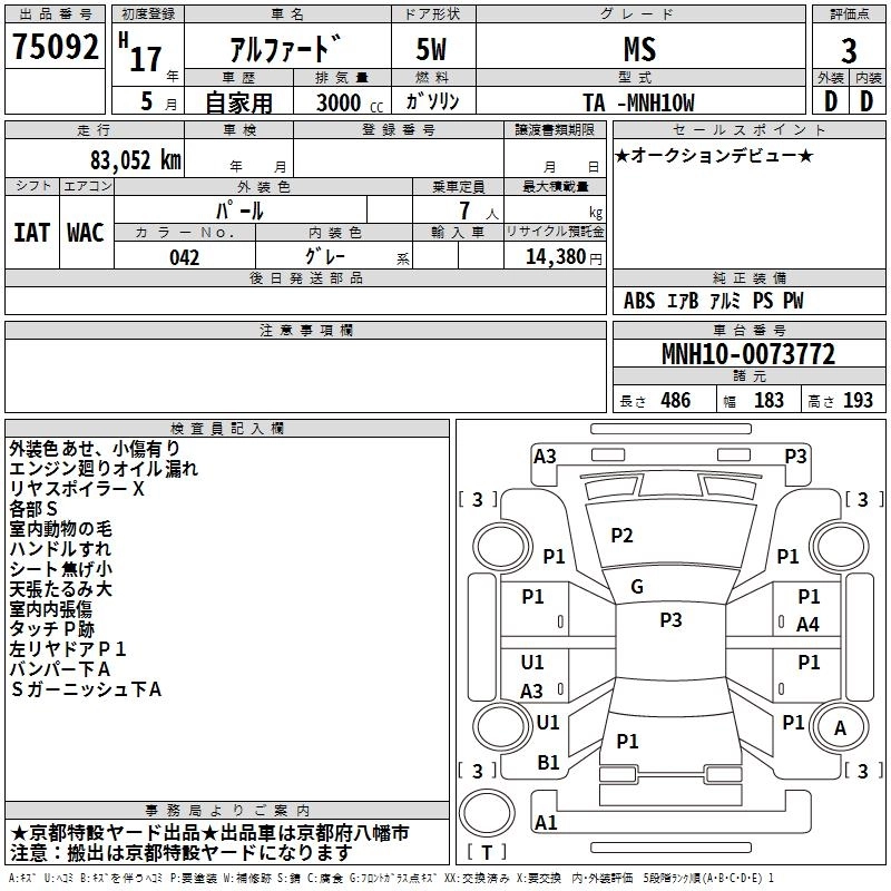 TOYOTA ALPHARD 2005 г., лот № 75092