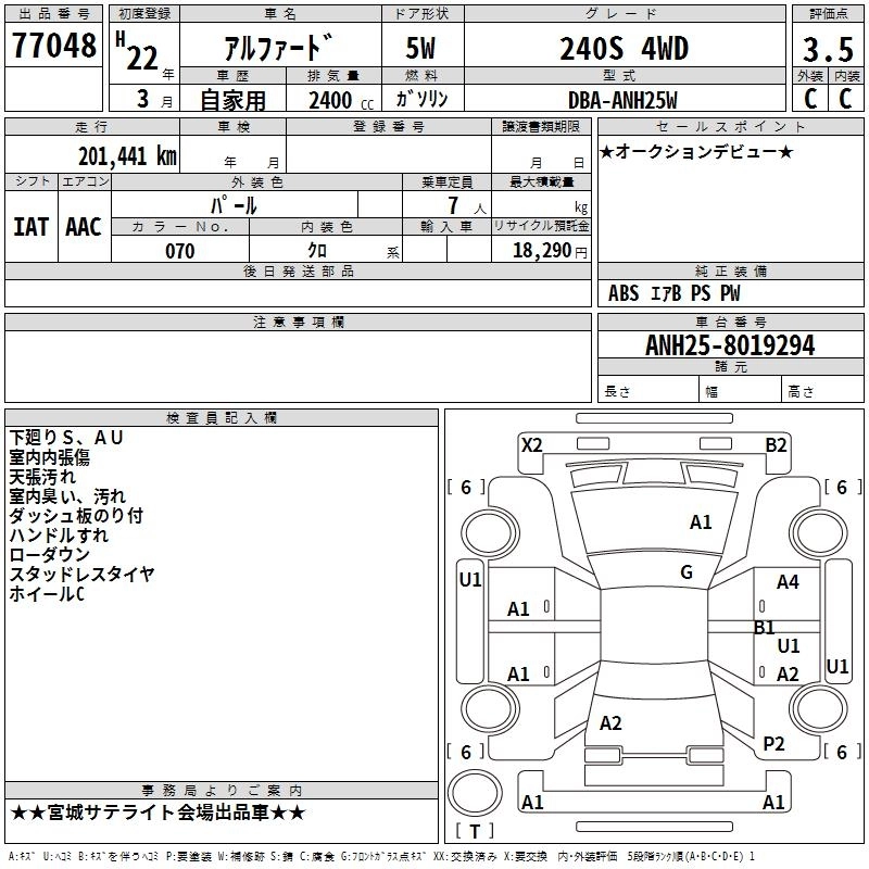 TOYOTA ALPHARD 2010 г., лот № 77048
