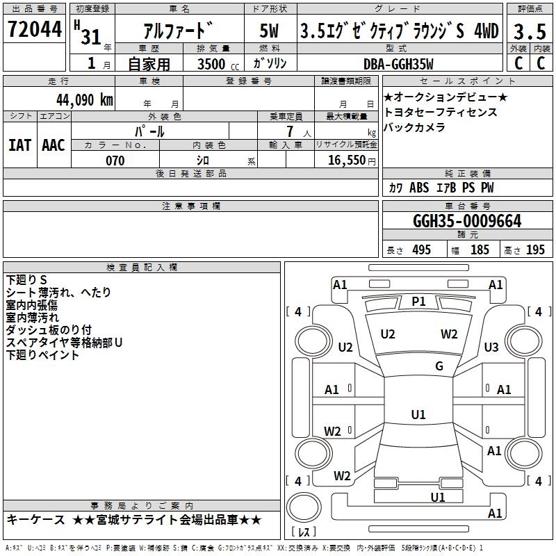 TOYOTA ALPHARD 2019 г., лот № 72044