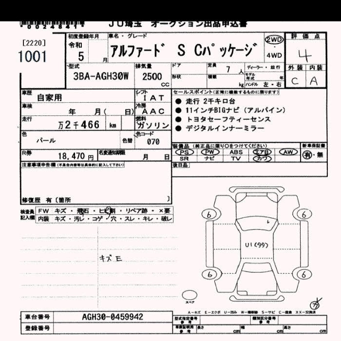 TOYOTA ALPHARD 2023 г., лот № 1001