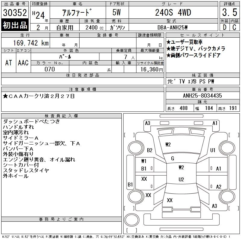 TOYOTA ALPHARD 2012 г., лот № 30352
