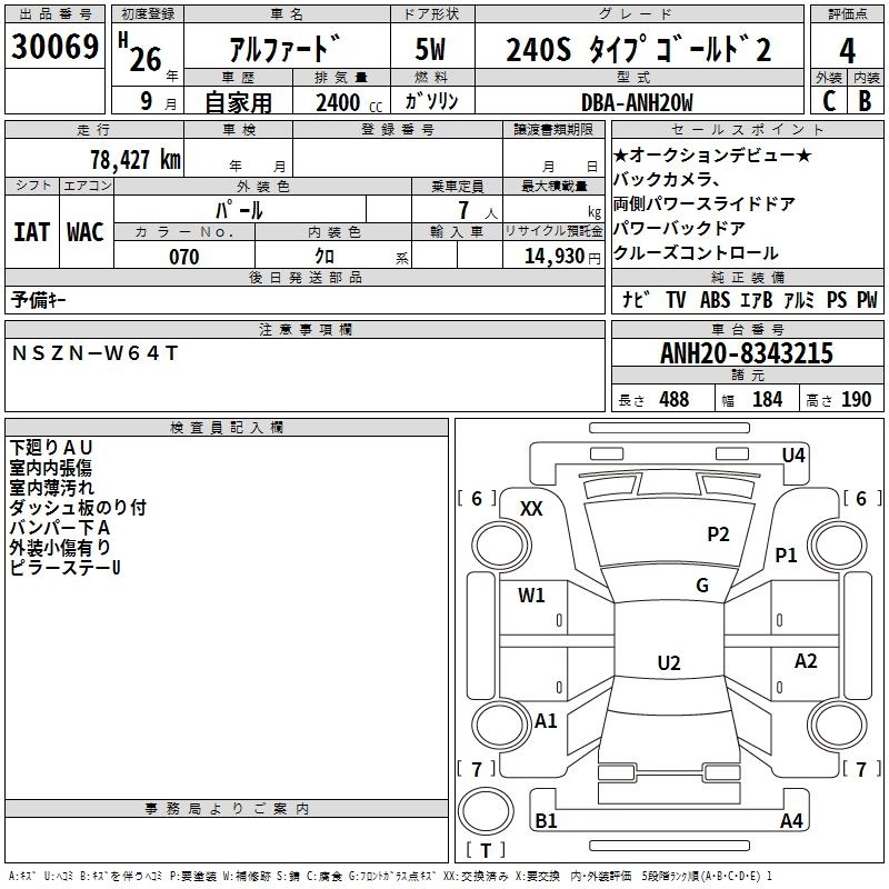 TOYOTA ALPHARD 2014 г., лот № 30069