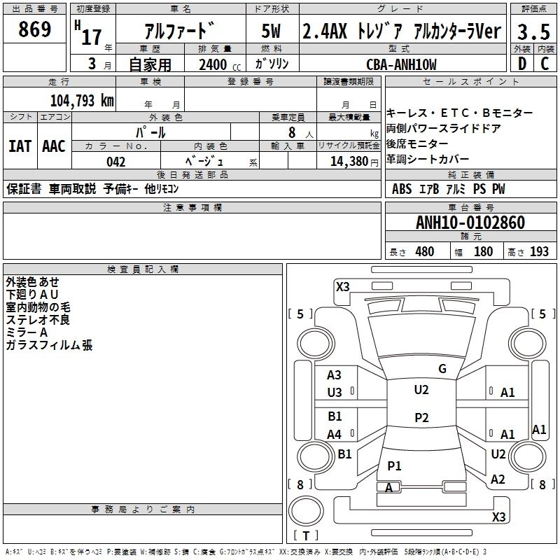 TOYOTA ALPHARD 2005 г., лот № 869