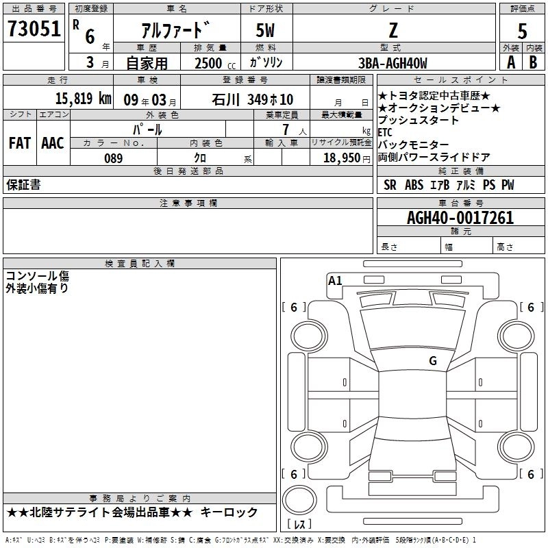 Статус выставлен на аукцион Лот 73051 Аукцион TAA Chubu Дата аукциона 12.03.2026
