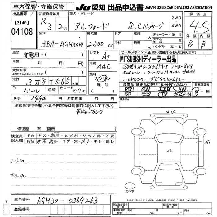 TOYOTA ALPHARD 2021 г., лот № 4108