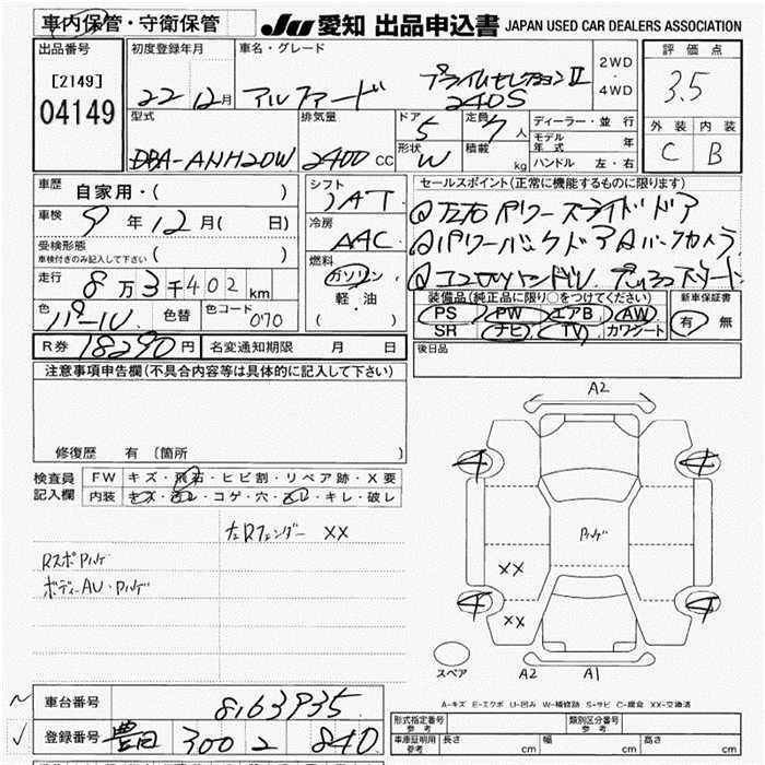 TOYOTA ALPHARD 2010 г., лот № 4149
