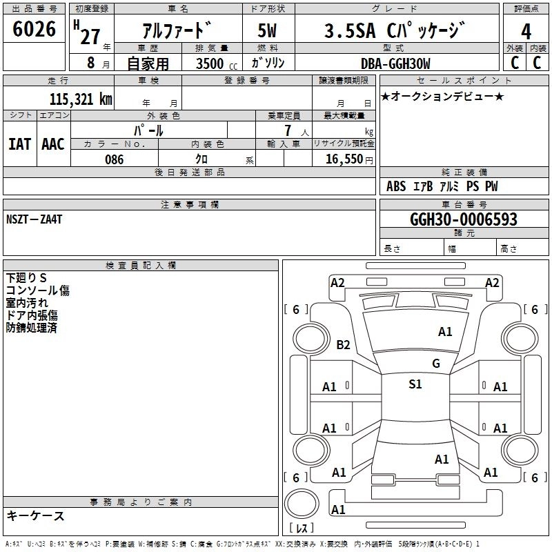 TOYOTA ALPHARD 2015 г., лот № 6026