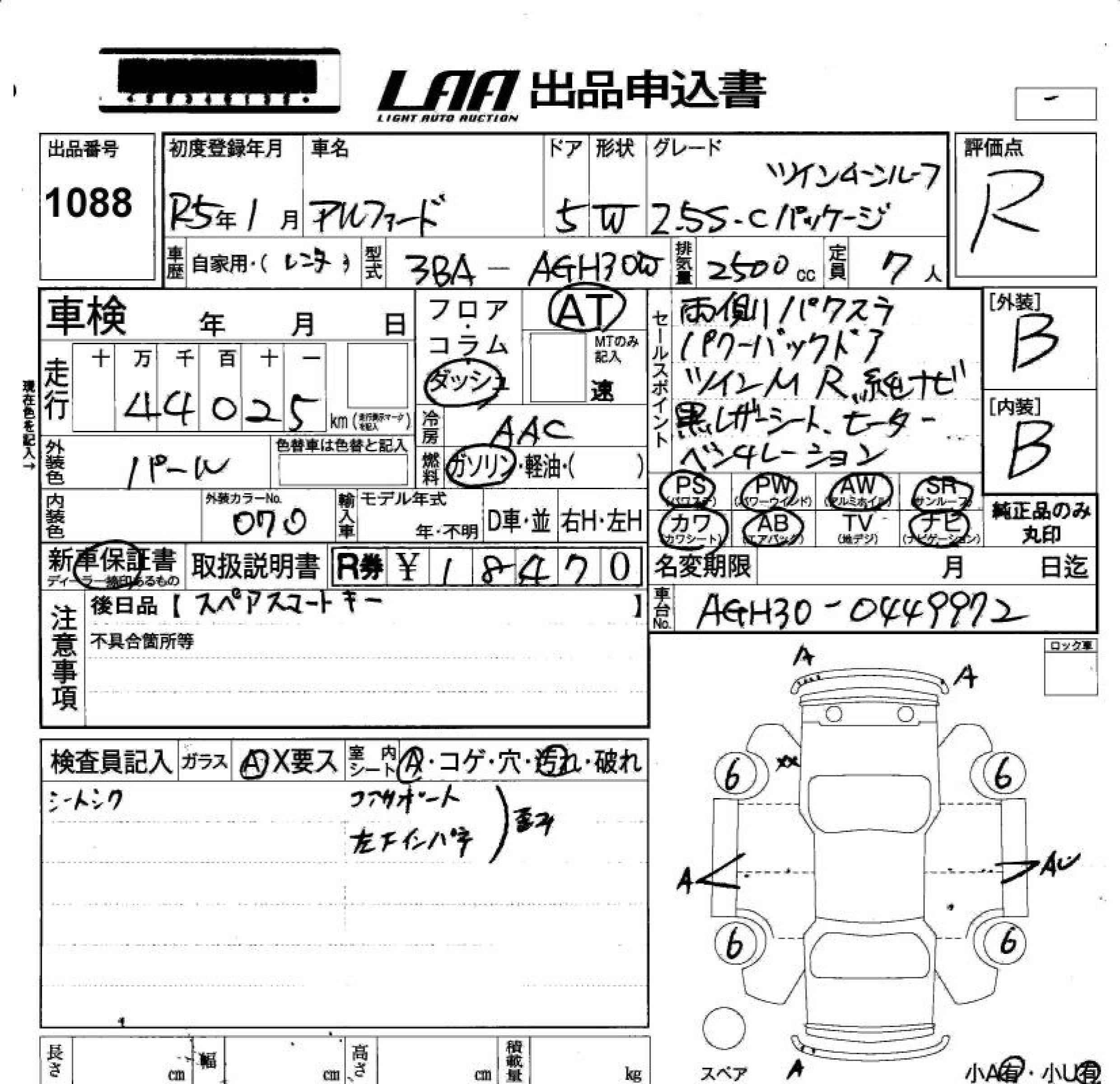 Год выпуска2023 Пробег 44 000 км КузовAGH30W Комплектация2.5S C PACKAGE TWIN