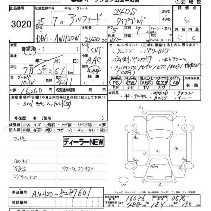 TOYOTA ALPHARD 2013 г., лот № 3020
