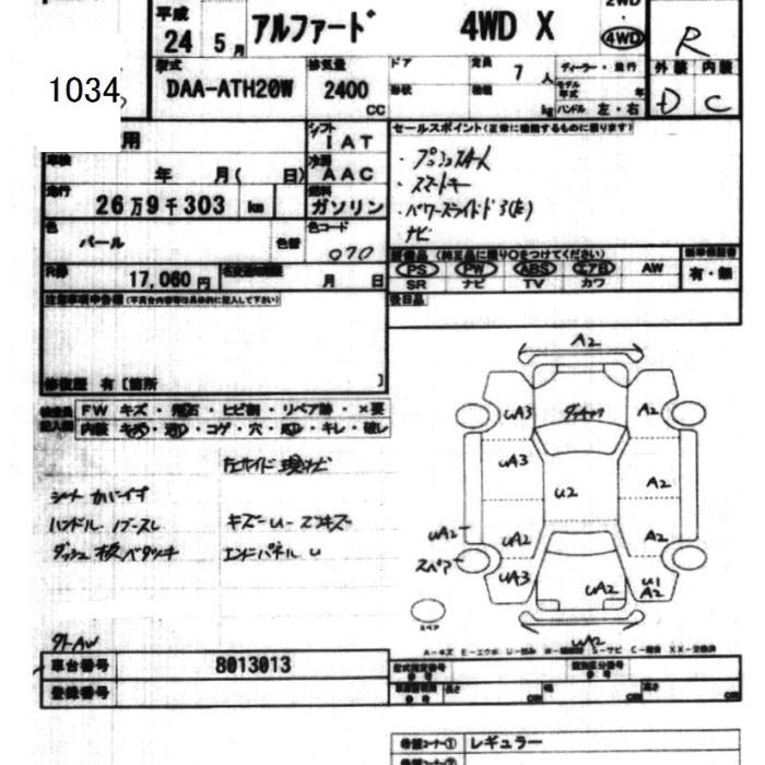 TOYOTA ALPHARD 2012 г., лот № 1034