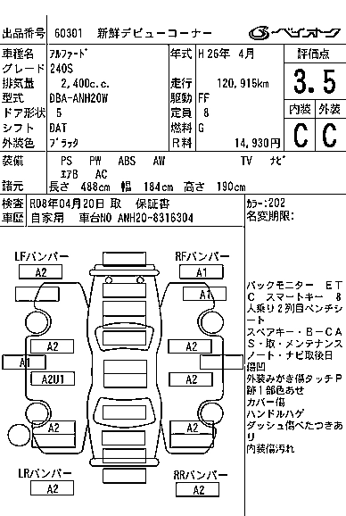 TOYOTA ALPHARD 2014 г., лот № 60301