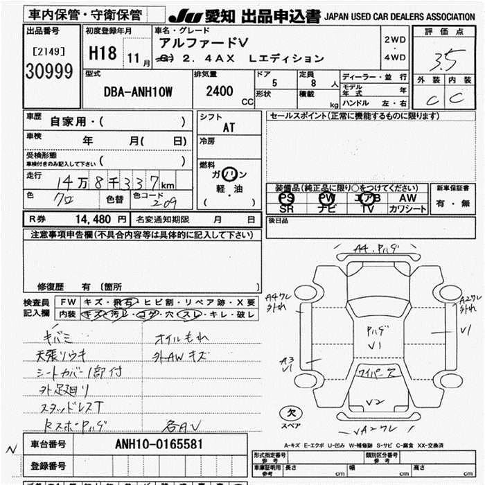 TOYOTA ALPHARD 2006 г., лот № 30999