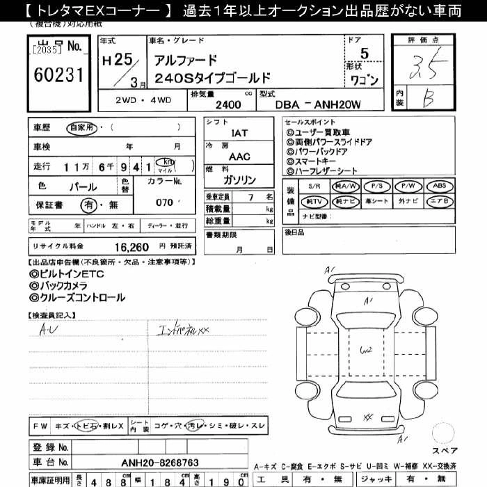 TOYOTA ALPHARD 2013 г., лот № 60231