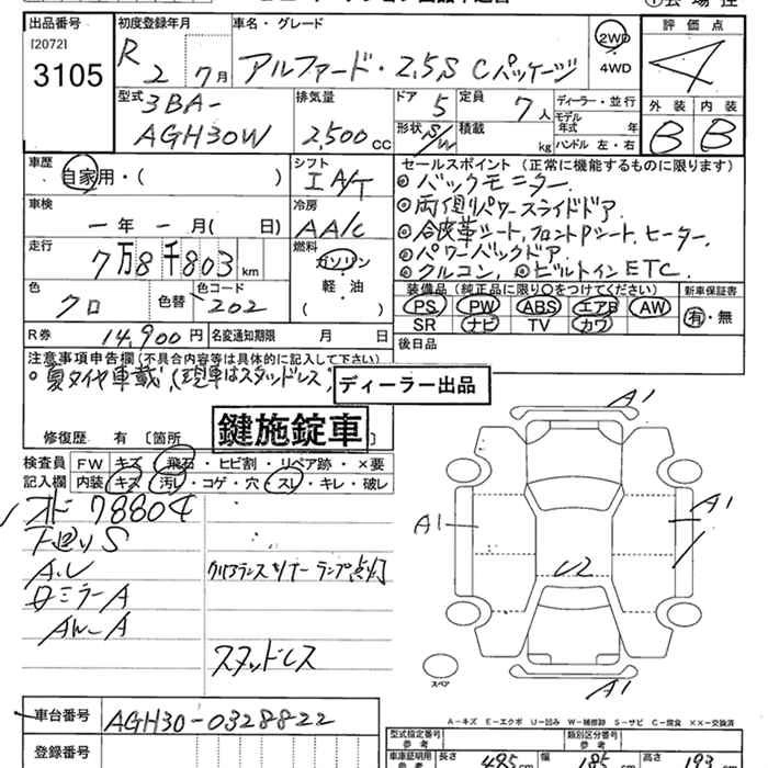 TOYOTA ALPHARD 2020 г., лот № 3105