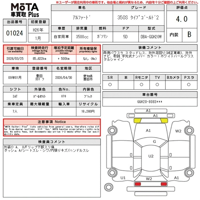 TOYOTA ALPHARD 2014 г., лот № 1024