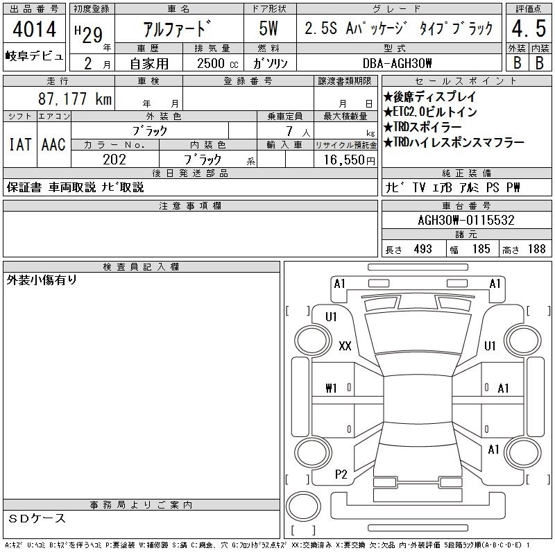 TOYOTA ALPHARD 2017 г., лот № 4014