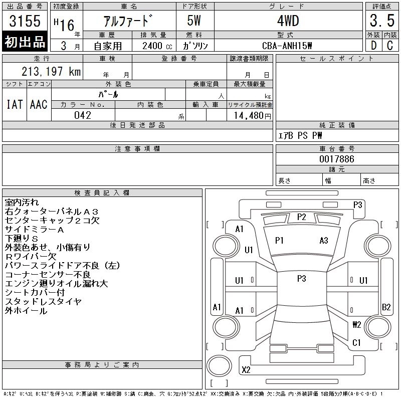 TOYOTA ALPHARD 2004 г., лот № 3155
