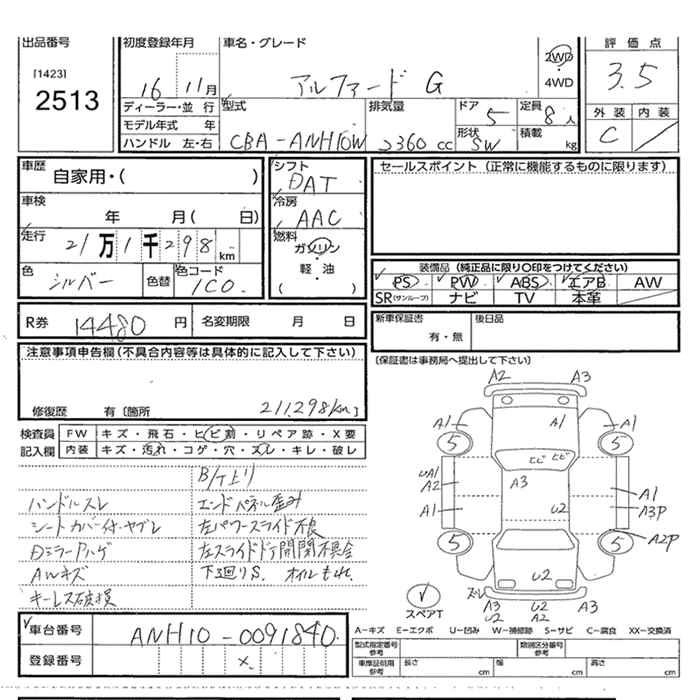 TOYOTA ALPHARD 2004 г., лот № 2513