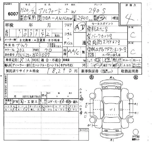TOYOTA ALPHARD 2008 г., лот № 6007