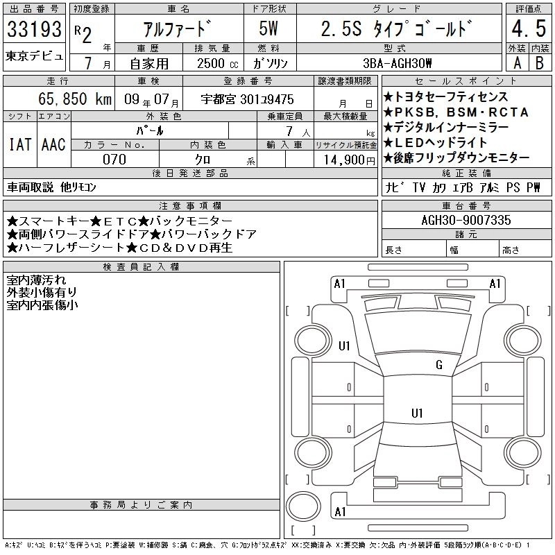 Год выпуска2020 Пробег 66 000 км КузовAGH30W Комплектация2.5S TYPE GOLD