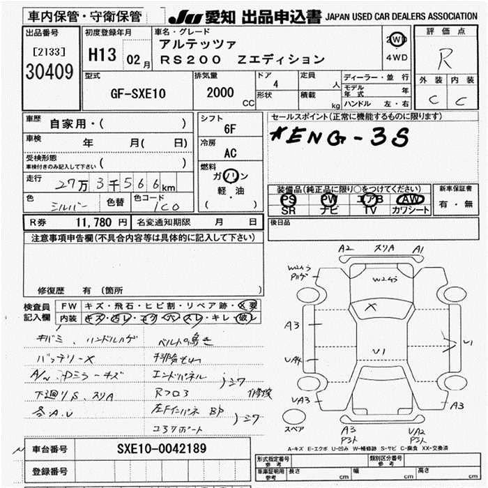 TOYOTA ALTEZZA 2001 г., лот № 30409