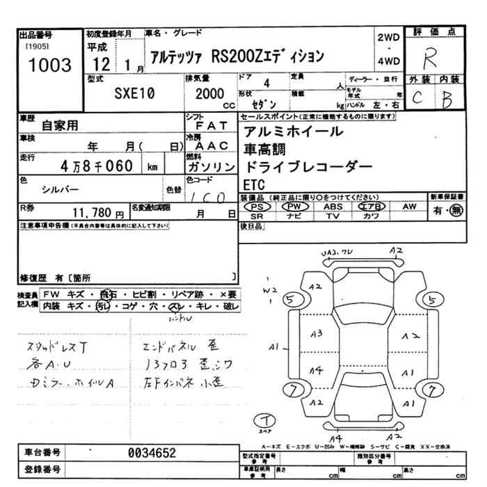 TOYOTA ALTEZZA 2000 г., лот № 1003