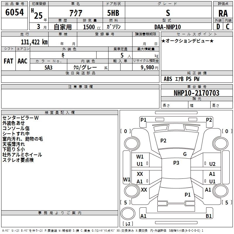 TOYOTA AQUA 2013 г., лот № 6054
