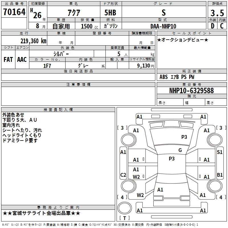TOYOTA AQUA 2014 г., лот № 70164