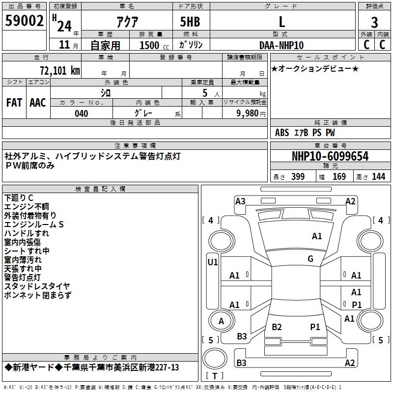 TOYOTA AQUA 2012 г., лот № 59002