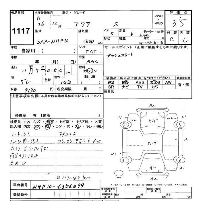 TOYOTA AQUA 2014 г., лот № 1117