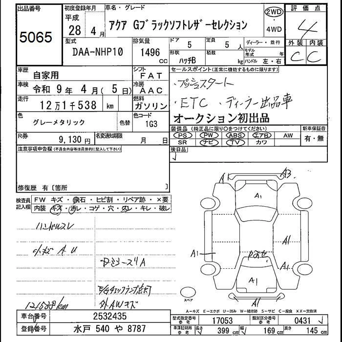 TOYOTA AQUA 2016 г., лот № 5065