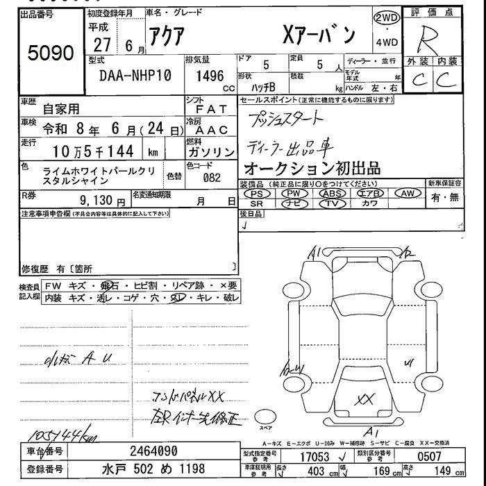 TOYOTA AQUA 2015 г., лот № 5090