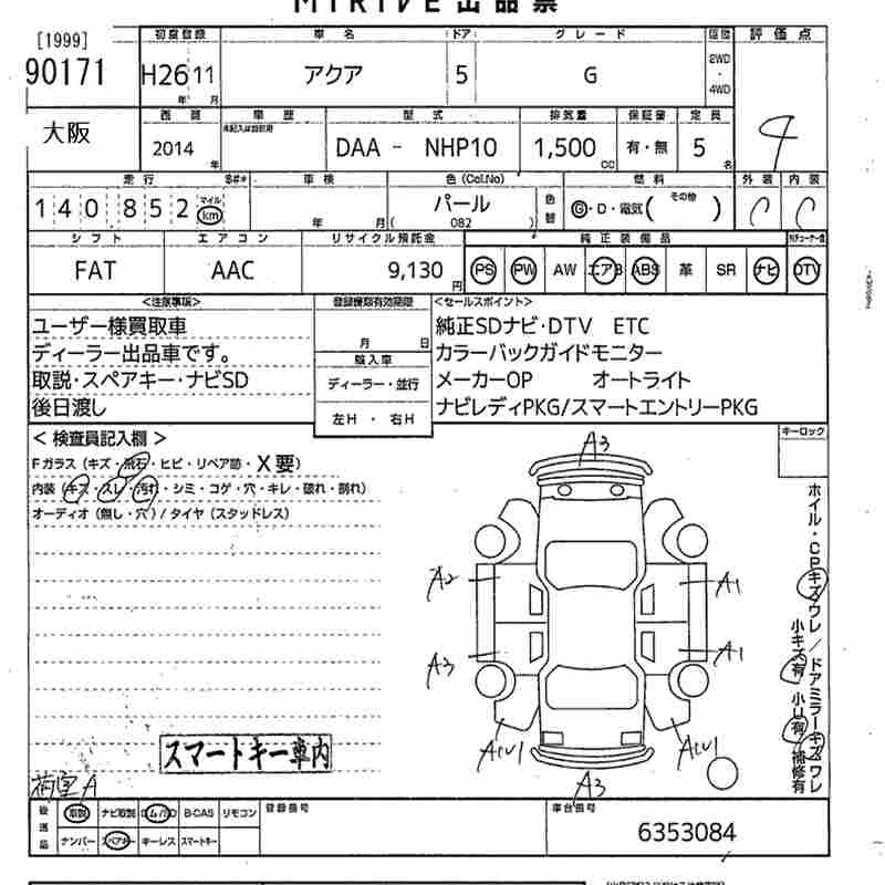 TOYOTA AQUA 2014 г., лот № 90171