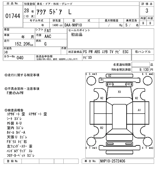 TOYOTA AQUA 2016 г., лот № 1744