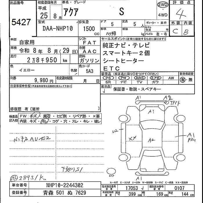 TOYOTA AQUA 2013 г., лот № 5427