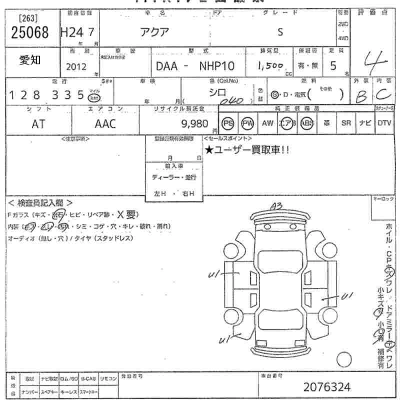 TOYOTA AQUA 2012 г., лот № 25068