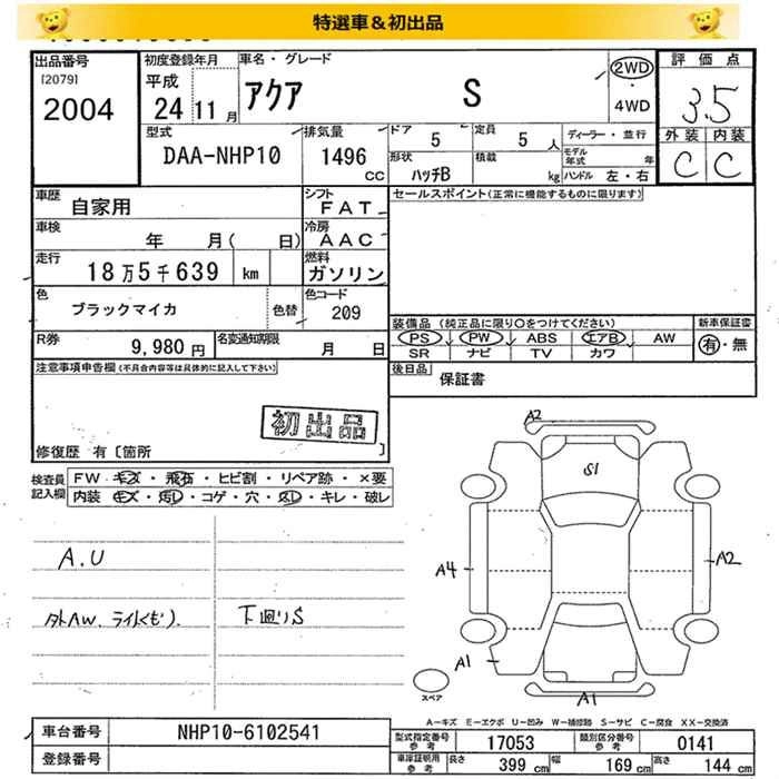 TOYOTA AQUA 2012 г., лот № 2004