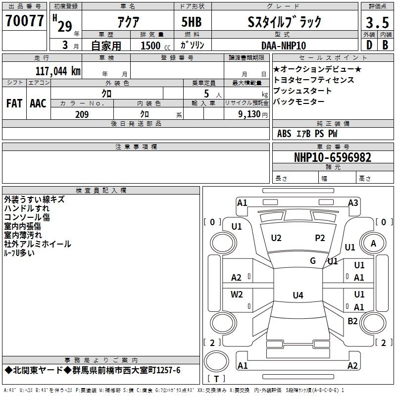 TOYOTA AQUA 2017 г., лот № 70077