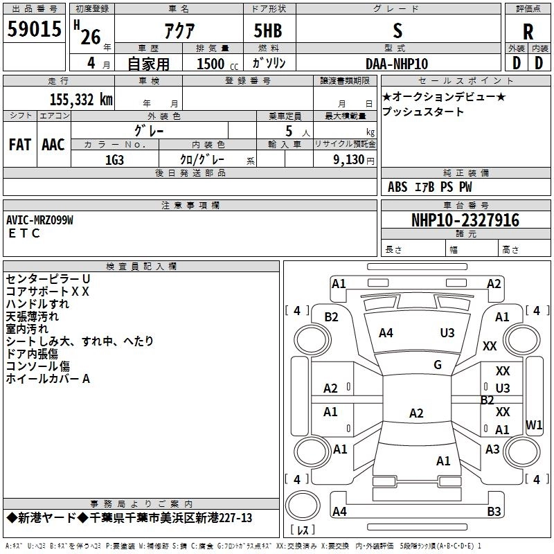 TOYOTA AQUA 2014 г., лот № 59015