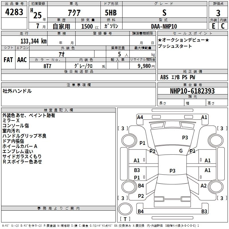 TOYOTA AQUA 2013 г., лот № 4283