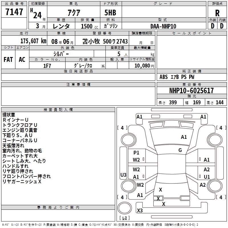 TOYOTA AQUA 2012 г., лот № 7147