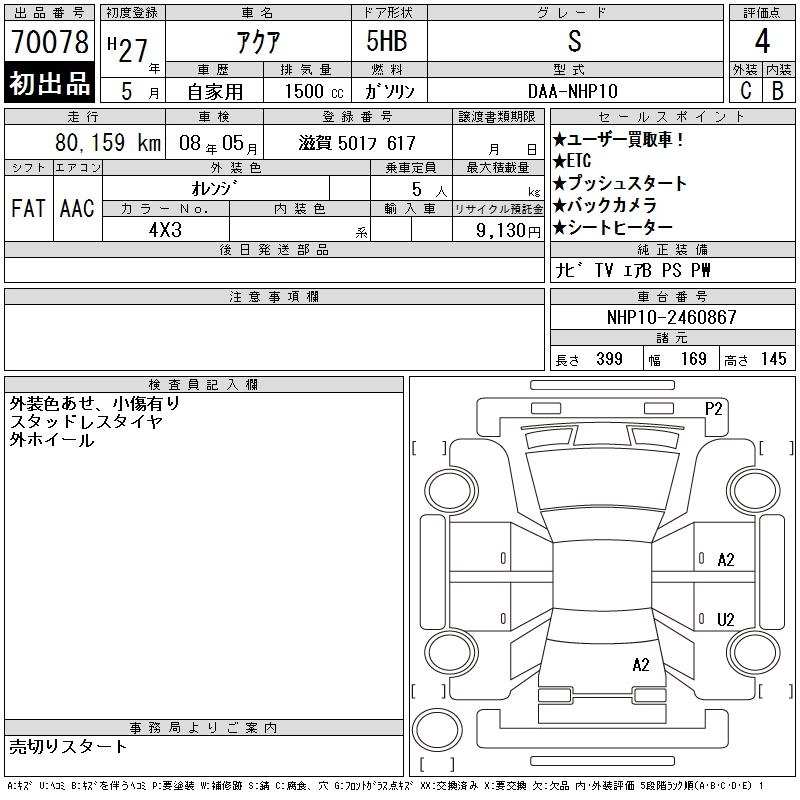 TOYOTA AQUA 2015 г., лот № 70078