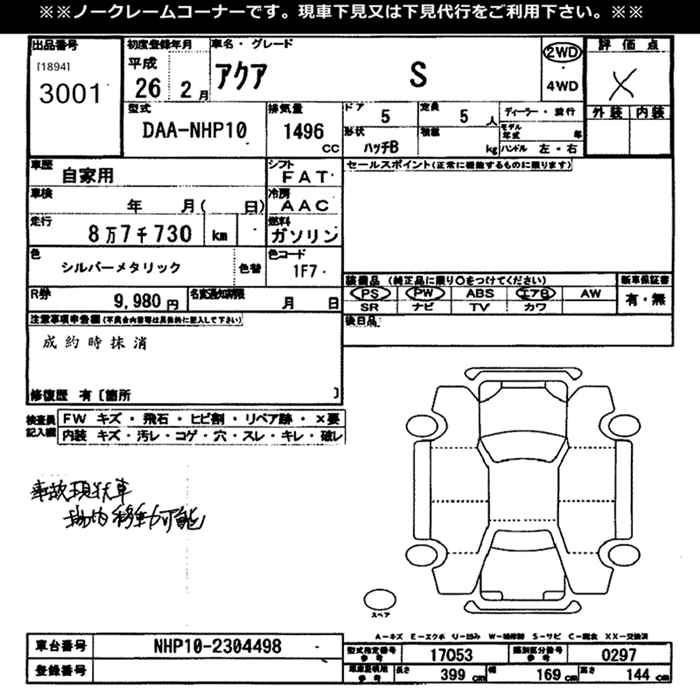 TOYOTA AQUA 2014 г., лот № 3001