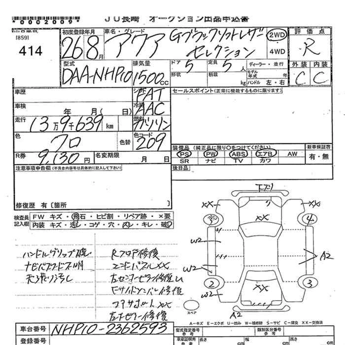 TOYOTA AQUA 2014 г., лот № 414