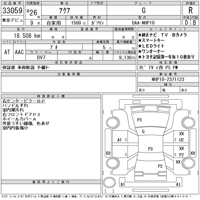 TOYOTA AQUA 2014 г., лот № 33059