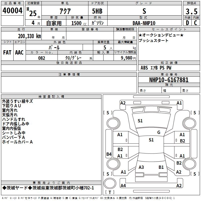 TOYOTA AQUA 2013 г., лот № 40004